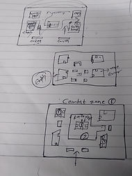 Started the level foundation with pen-paper prototyping with some random sketches that lead to the final layout for the level. The whole layout was designed keeping combat zones in mind all the time. So, designing the game space was heavily affected by the combat zones and their enemy placement.